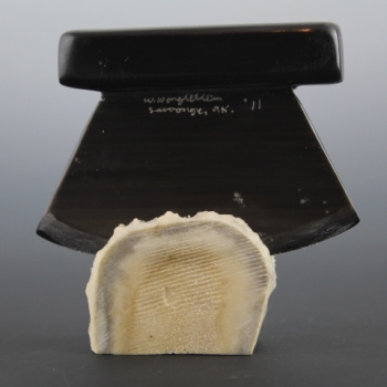 One of aknd etching of the State of Alaska on baleen in ulu form.