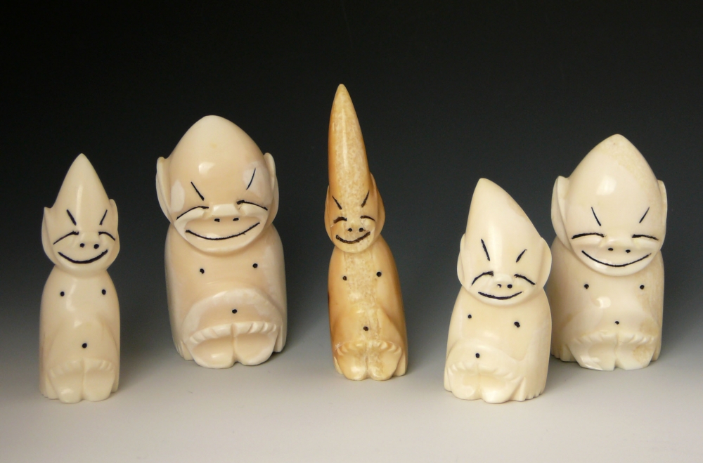 Billikens"A collection of Alaskan artifacts is not complete without a few billikens. This object, which appears to have been modeled after a Buddha, was invented by Florence Pretz, and art teacher in Kansas City, Missouri, but it became by adoption one of the most famous - if not infamous - Alaska ivory carvings of all time. Its fame rests not only on its huge production after it was first copied by Alaska carvers in ivory about 1909 but also on the popular good-luck attributes." - Text from A Legacy of Arctic Art by Dorothy Jean Ray
