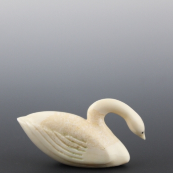 Bowing swan floats alone in peace.