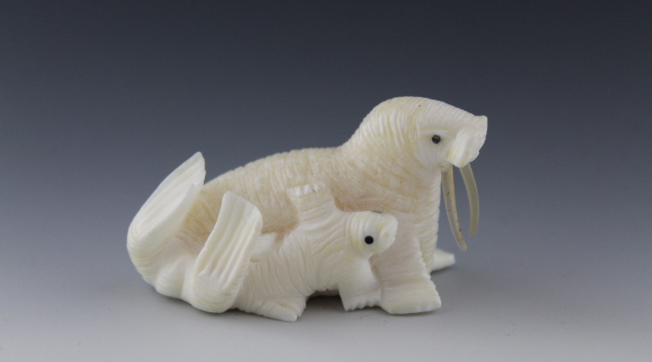 Mother walrus nestles baby. Complete with baleen inlan and walrus whisker tusks.