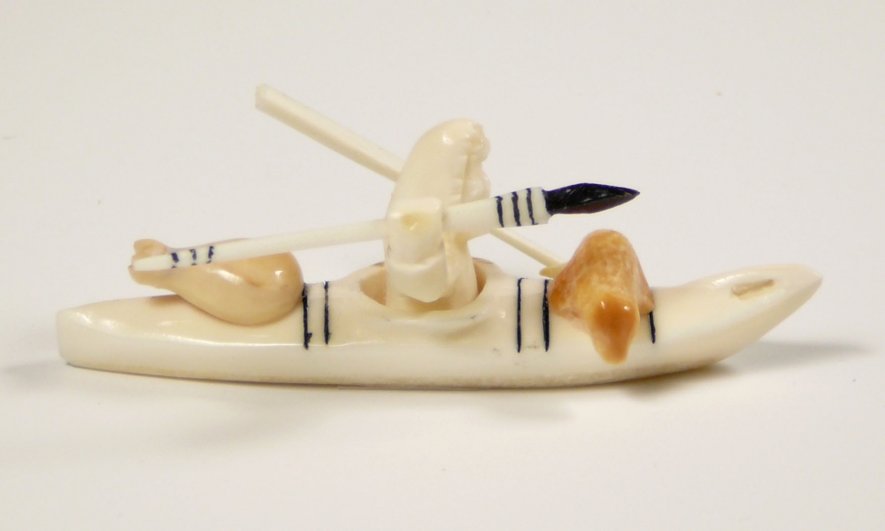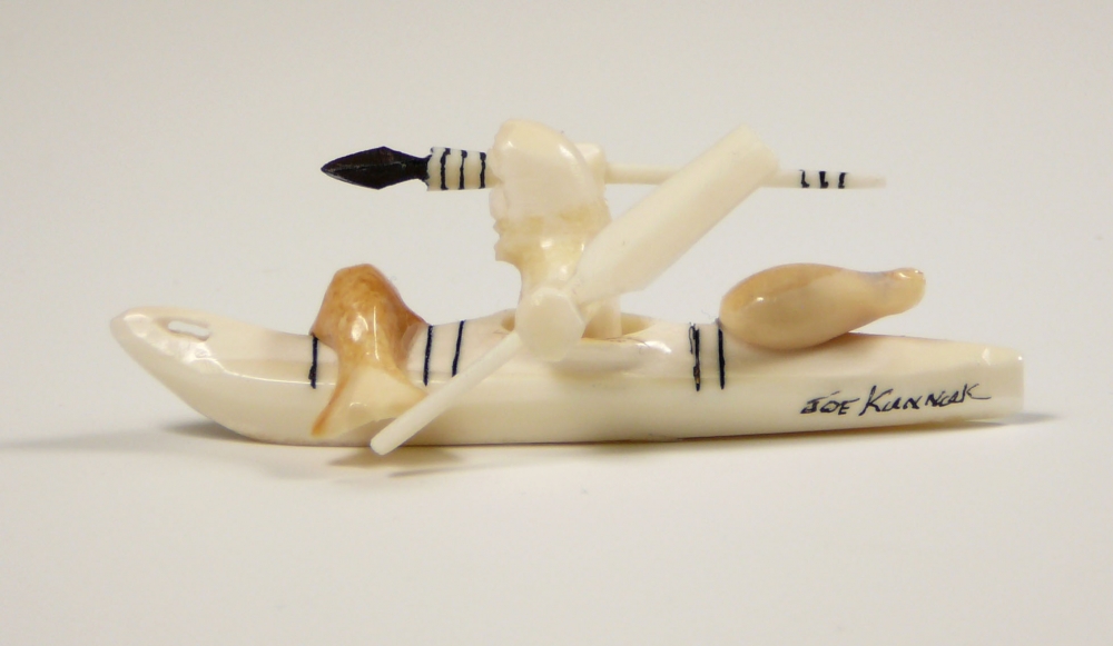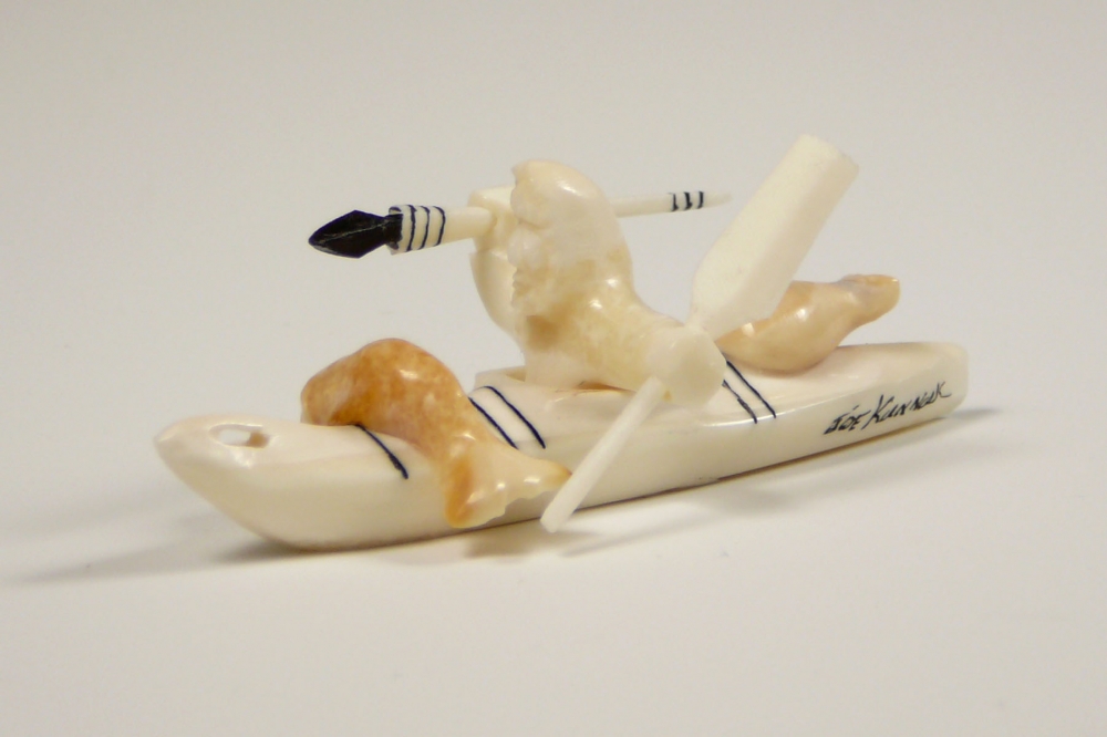 Hunter in KayakThis work is an example of the type of kayak carvings available by Joe Kunnuk. While we cannot guaruntee this exact piece, we often have several that are very similar. Please contact for price and availability.
