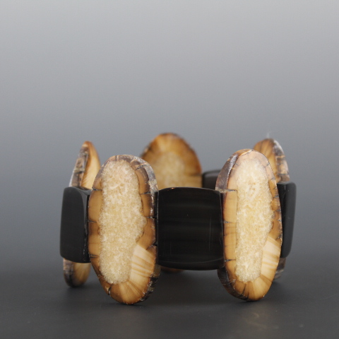 Med-Large sized bracelet in beautiful brown ivory and black baleen.