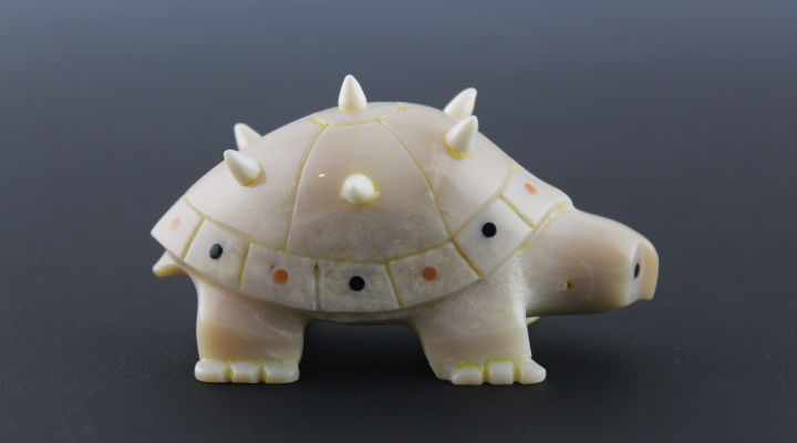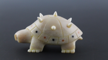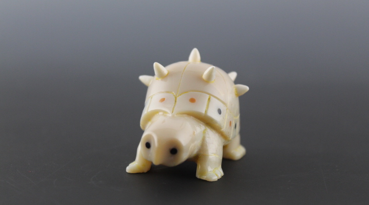 One of kind underwater ivory turtle with white ivory spikes and musk ox horn and baleen inlay accents.