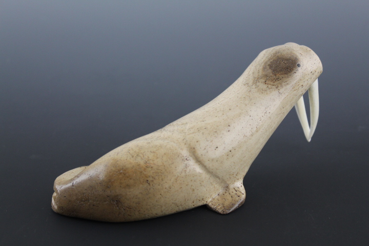 Stonelike jawbone sculps slender female walrus in classic pose.