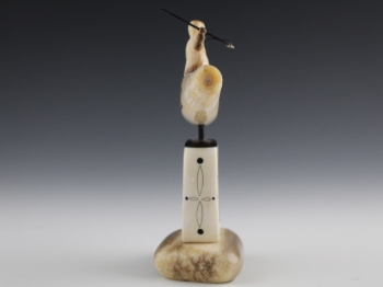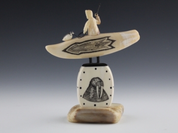 Polar bear tooth kayak hunter prepares his throw on this unique two-sided scrim.