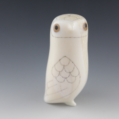 Traditional Ungott stipled owl with old ivory / baleen eyes.
