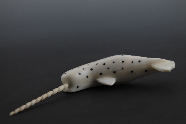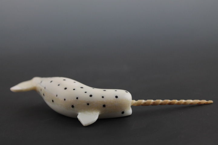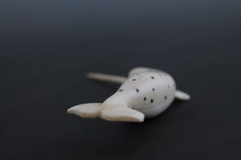 Narwhal carved from ivory and fossilized ivory, complete with baleen inlay.