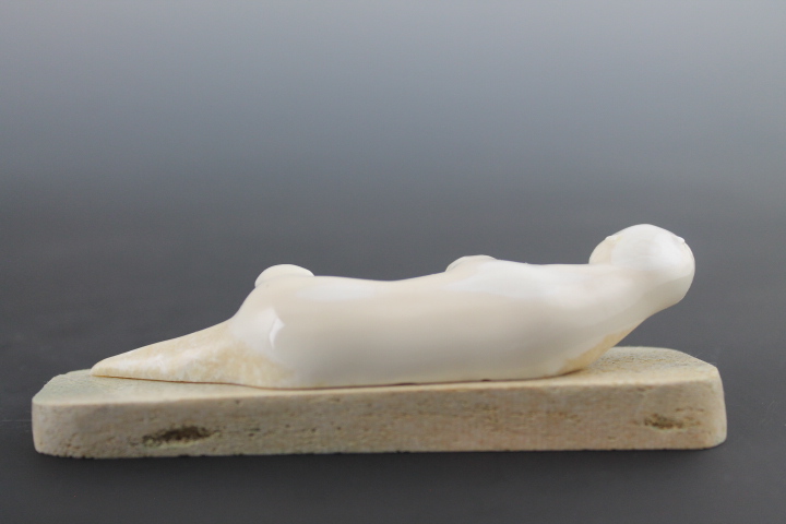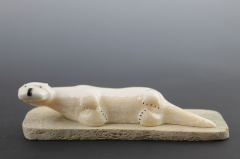Otter lies on bone base, comfortably on her side.