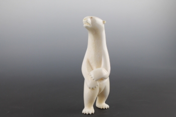 Smooth standing polar bear turns body towards pursuit.