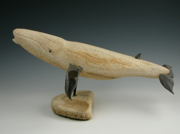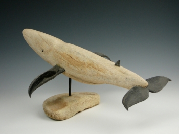 Humpback whales are part of the baleen whale family and second only in size to the blue whale. Instead of teeth, they use baleen strips to filter food. The body of the whale is whale bone and the fins are formed with pieces of baleen. Simply capturing the unique features of this whale, Miklahook brings the materials full circle as they re-form one of the animals from which they came.