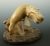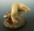 Mitchell stands out as a carver in his ability to add great motion and realism to his animals. In this case, the twisting body of his bowhead whale, the bumps on the snout and position of the flippers all bring this whale to life. Carved from a dense fossil bone (probably walrus skull), the whale is suspended by a thick brass wire. The base is a fossil whalebone vertebrae disk with a separate piece of bone jutting upward to provide sufficient height to suspend our swimming bowhead.