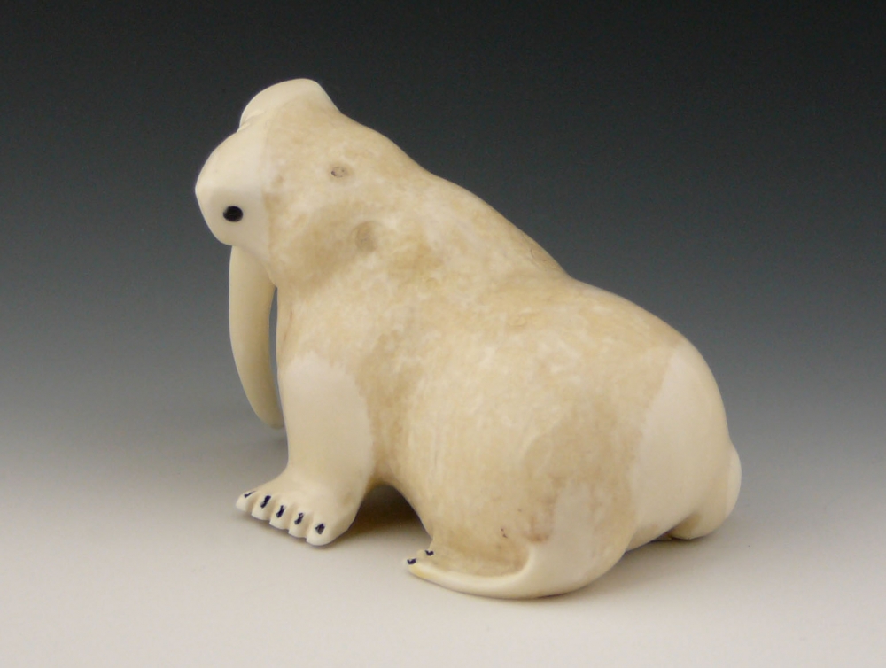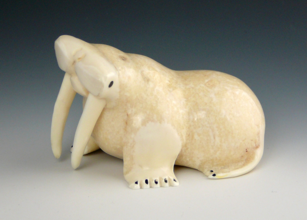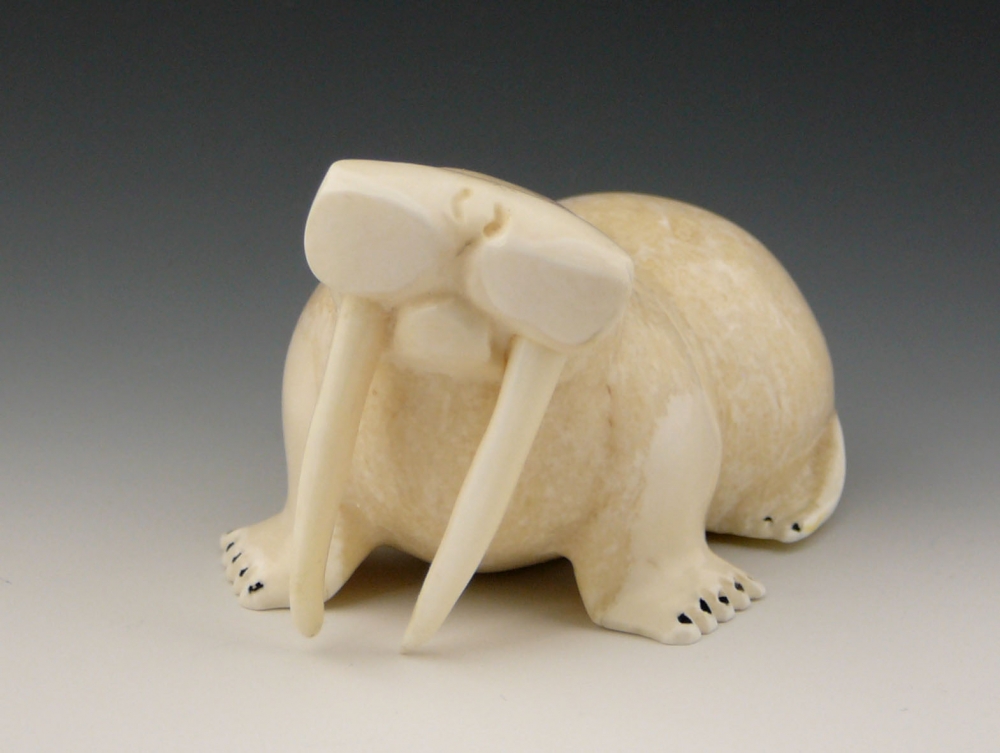 View more work by Arthur Gologergen This uniquely stylized walrus reflects the playful spirit of the animal. It is carved from walrus ivory, the eyes are baleen inlay.