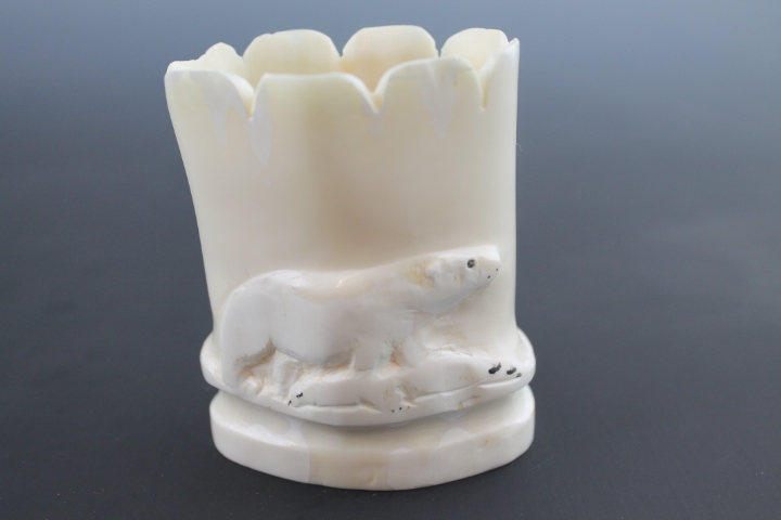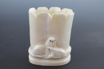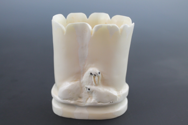 Circa 1980. Walrus tusk root relief carving.