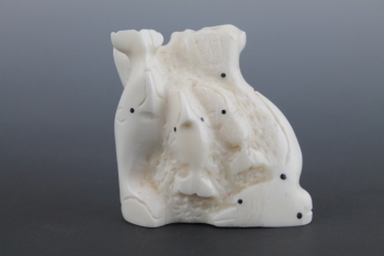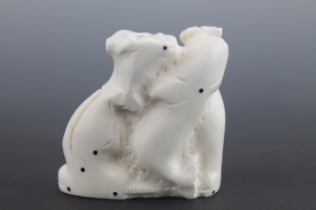 Relief carving of multiple whales with baleen inlay.